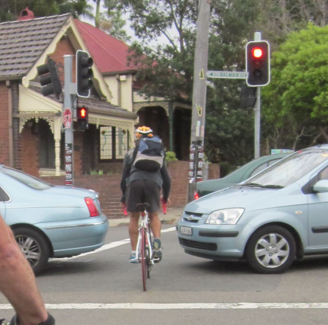 And there are those who are in such a burning hurry, they'll duck through the stalled cars at red lights. I'm not keen on this - if the traffic conditions change and the cars start moving, you can find yourself stranded. Plus it's illegal. So make that stupid and illegal as reasons not to do it.